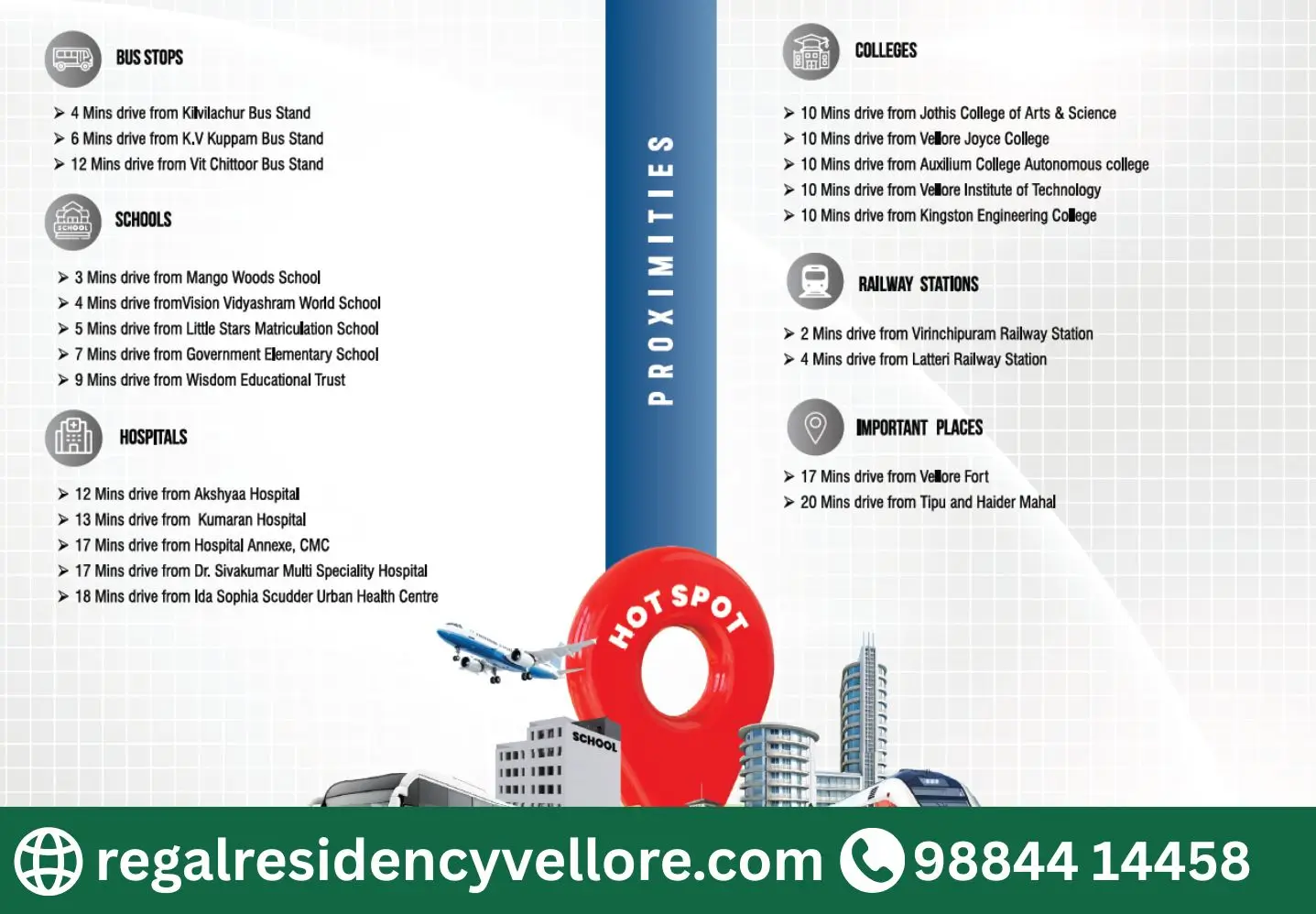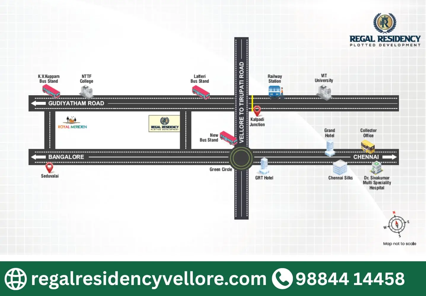 Regal Residency is strategically located in the fast-developing Katpadi–Lathery residential corridor, ensuring daily convenience 🚶♂️ and high appreciation potential 📈.